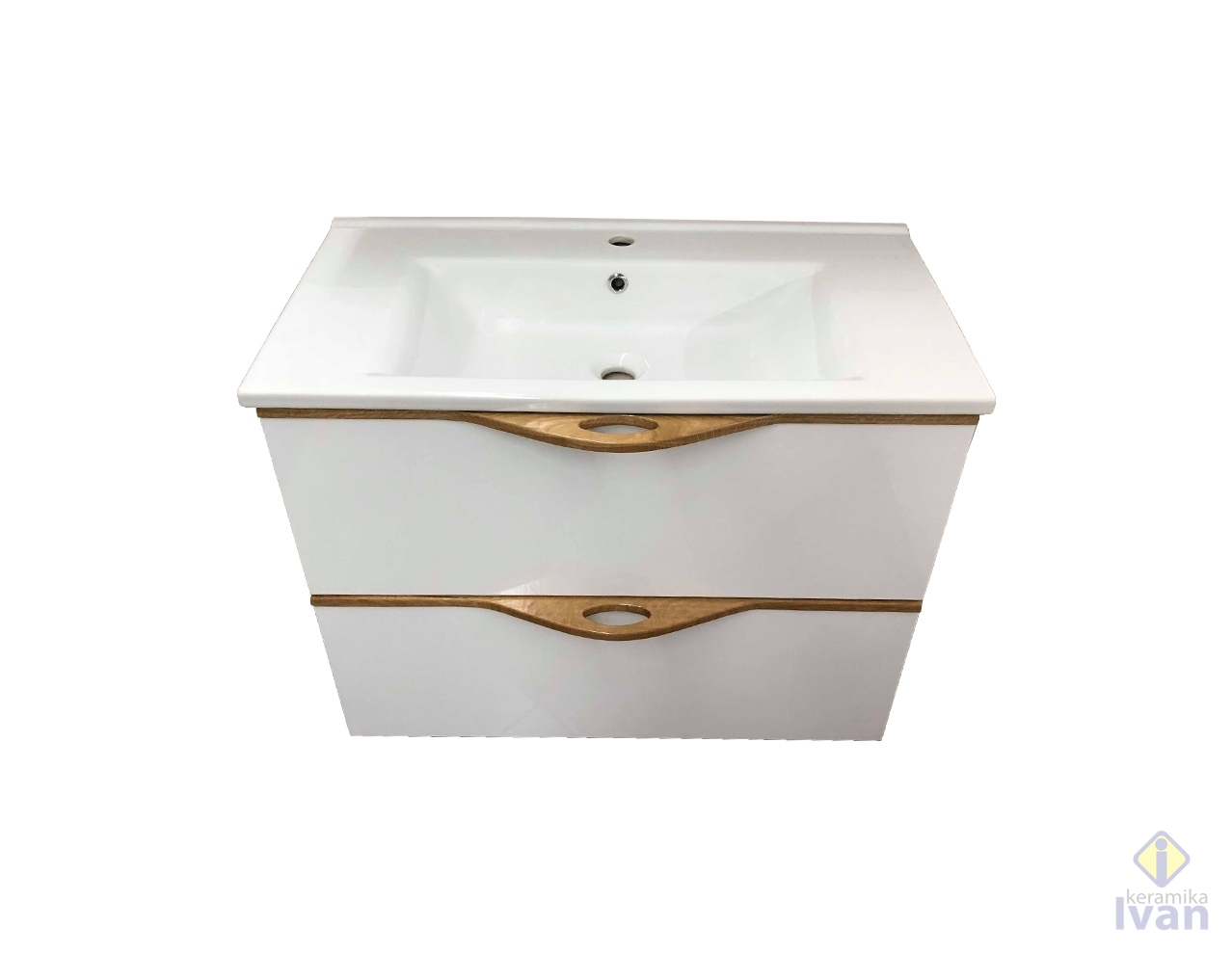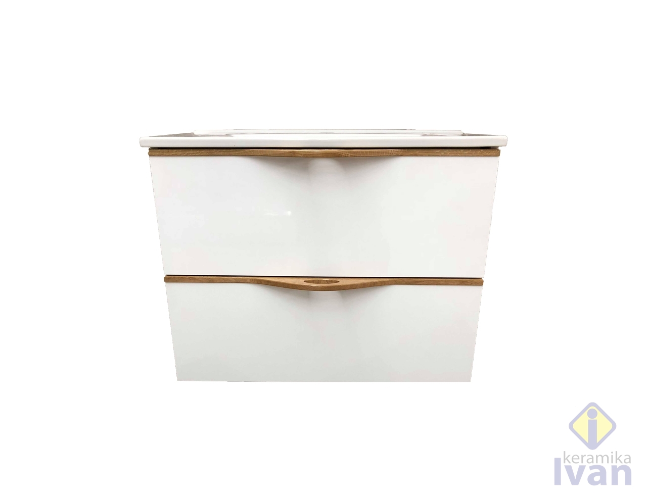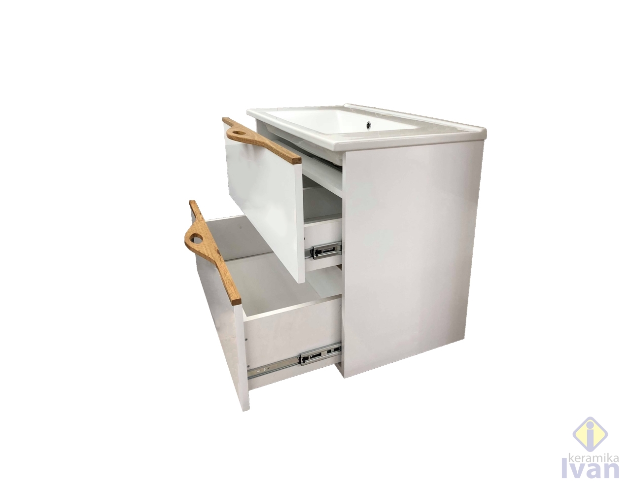 Konzolni ormaric izradjen od medijapana, ofarban, sa dve fioke, klizaci sa usporivacima, rukohvat od punog hrastovog drveta, bez umivaonika.