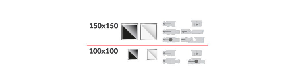 Standard kupatilski slivnici se proizvode u 2 različite veličine: 100mm x 100mm i 150mm x 150mm (crno i belo kaljeno staklo).