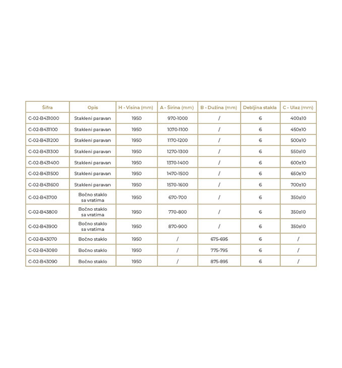 Visokokvalitetno kaljeno staklo (6 mm) – Pruža sigurnost, otpornost na udarce i dug vek trajanja.