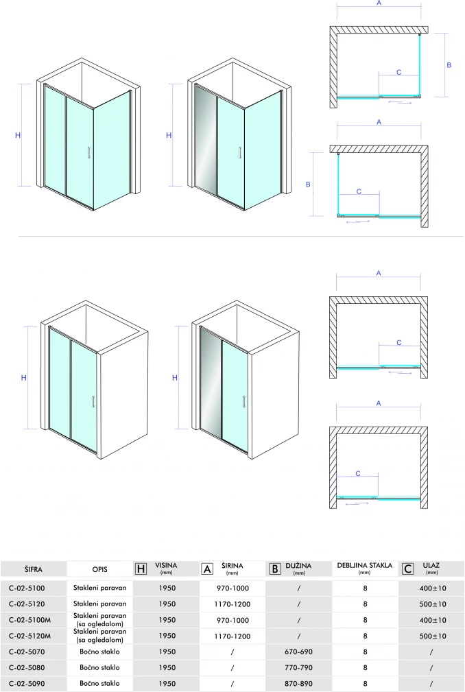 Tuš kabina Copen Titan dimenzije 100×70 cm sa kaljenim staklom i ogledalom. Integrisano ogledalo doprinosi osećaju prostranosti i vizuelno uvećava kupatilo.